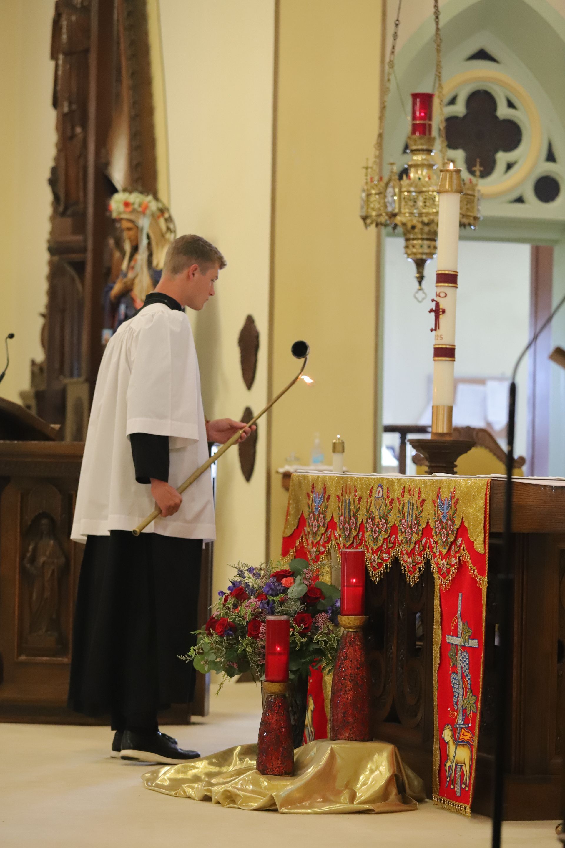 Welcome to St. Mary of the Visitation, a faithful parish rooted in the rich tradition of the Catholic Church. Guided by the Holy Spirit, we strive to live out the fullness of our Catholic faith in love, prayer, and the sacramental life. As a parish family located in the heart of Huntingburg, IN, we pursue all that is good, true, and beautiful—drawing from the wellspring of sacred tradition, the teachings of the Church, and the splendor of the liturgy.