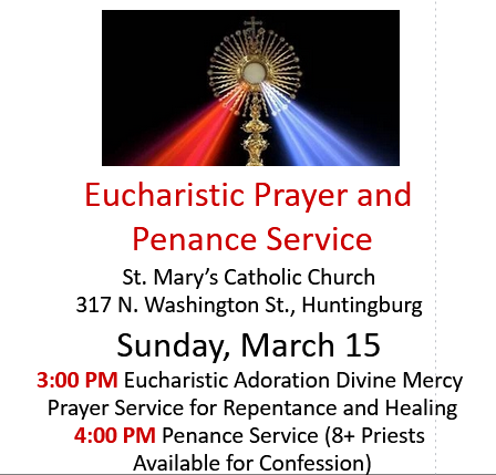 Monday | 6:00 PM (Nov, Advent and Lent)